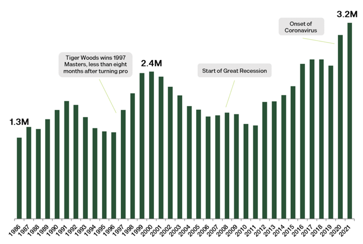Beginning Golfers in The U.S. Who Played Their First Ever Round of Golf on a Golf Course