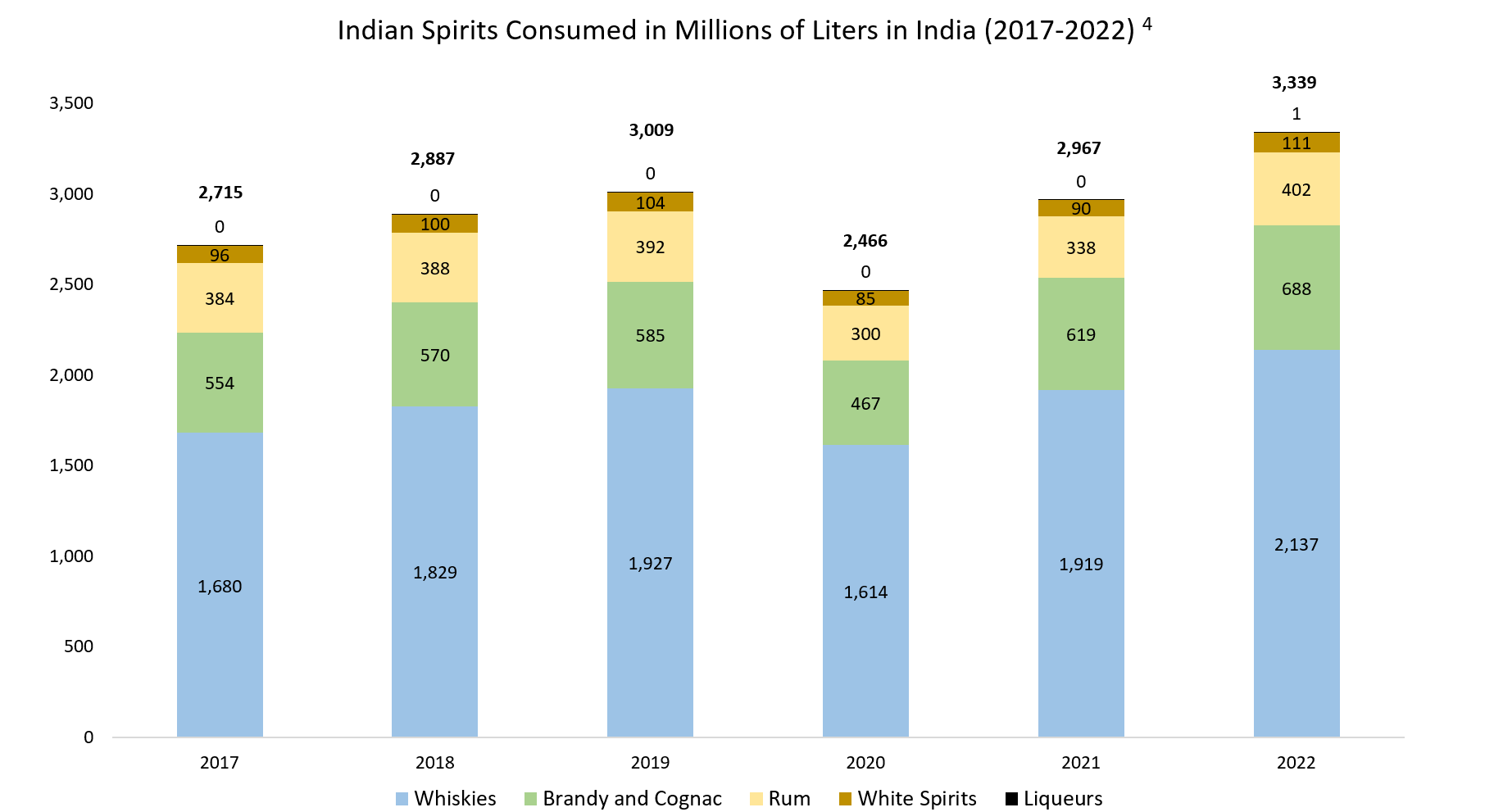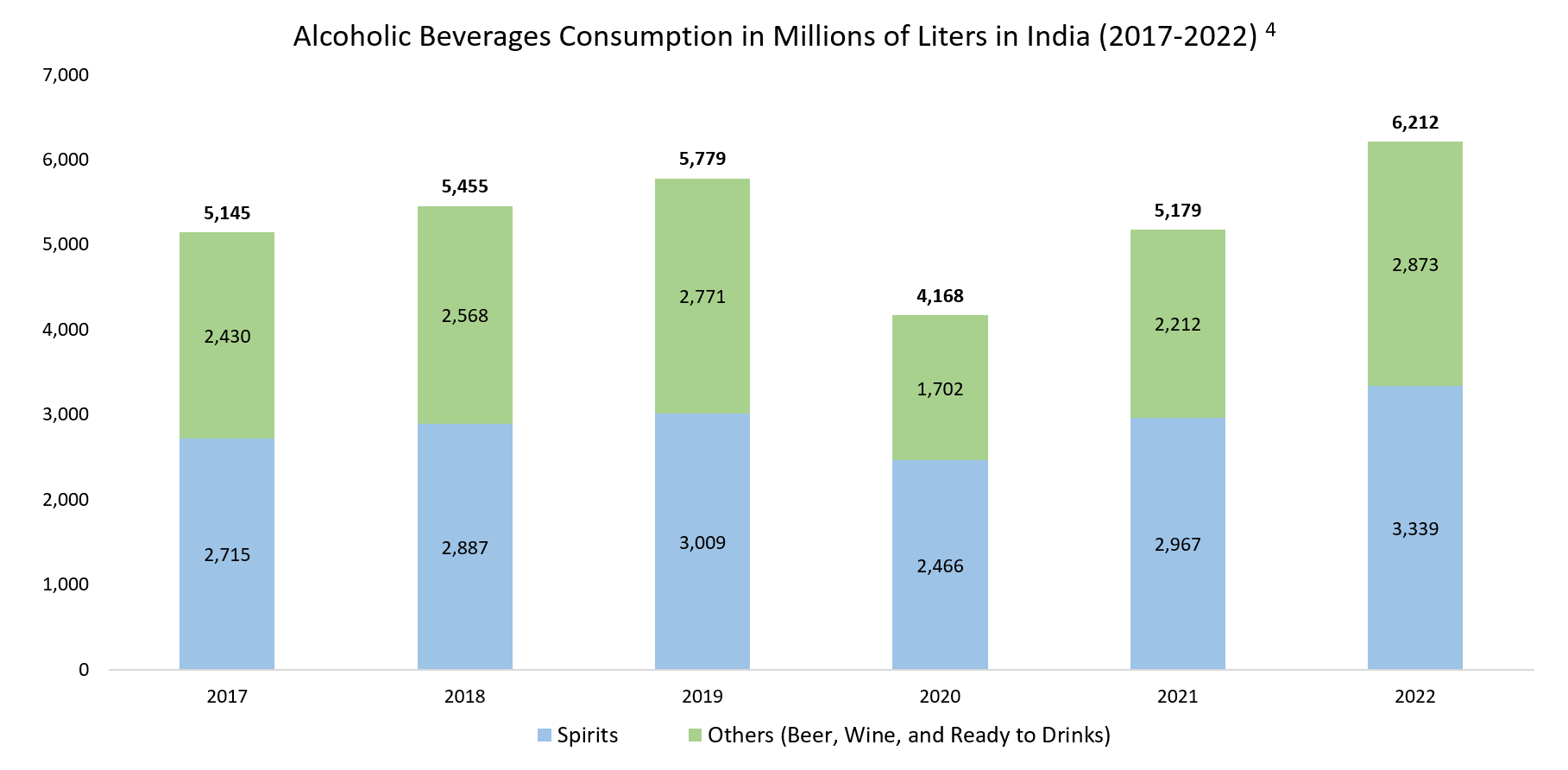- https://agriculture.canada.ca/en/international-trade/market-intelligence/reports/sector-trend-analysis-beer-wine-and-spirits-india "Spirits consumption is ~54% = 3,339/6,212"