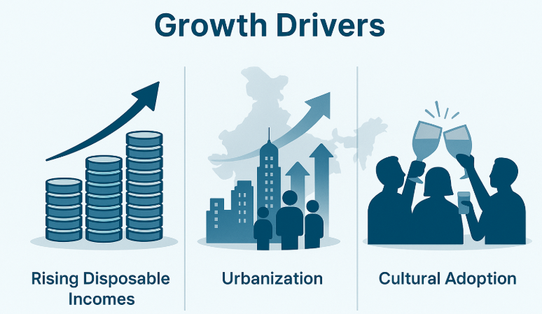 - Cultural Shifts: Spirits are deeply embedded in social occasions, especially in urban India, sustaining long-term demand.