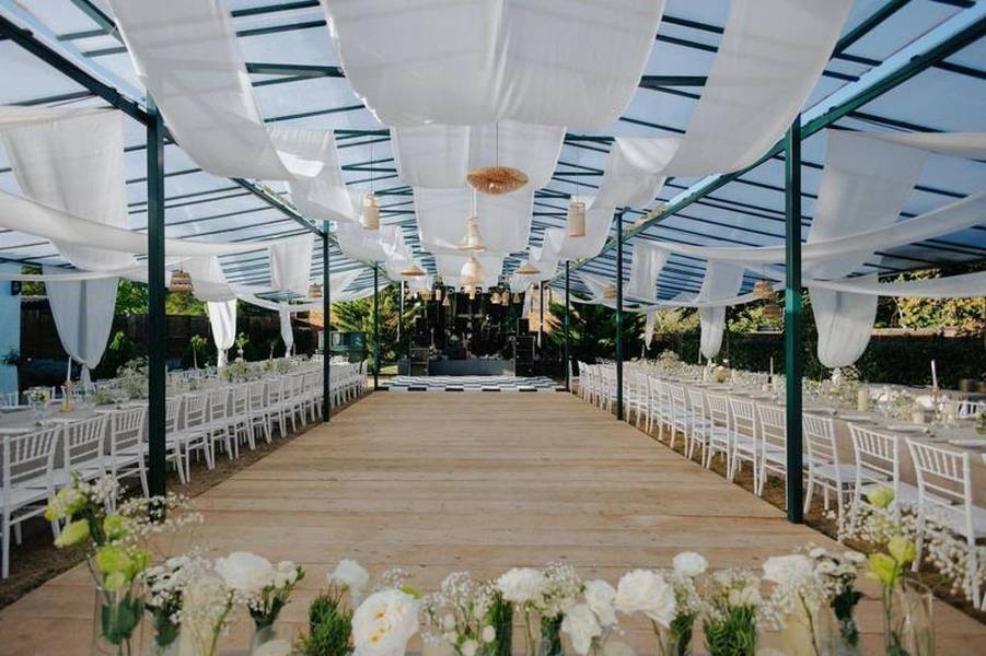 - Complete real estate package included: a 475 m² main event building with terrace, a 100 m² professional kitchen, and a 200 m² auxiliary/storage building.