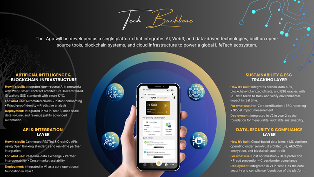 Proprietary AI-powered ecosystem integrating funeral planning, healthcare access, insurance, and financial tools.